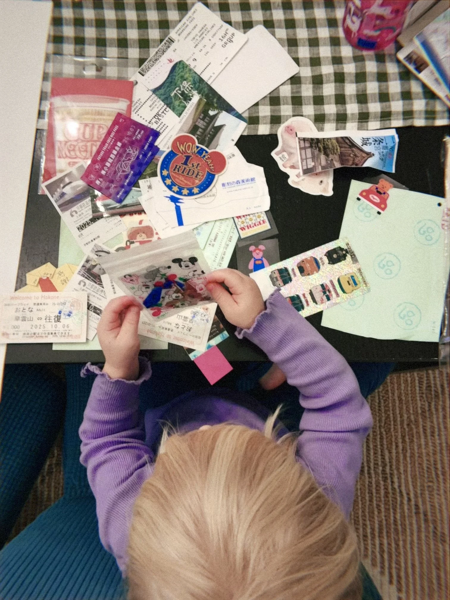 I personally love saving tangible momentos from a trip – the ticket stubs, scraps of paper, stickers. But it’s not great if it just sits in a box for years until it’s eventually thrown out. Here’s how I utilized these memories to create a collage.