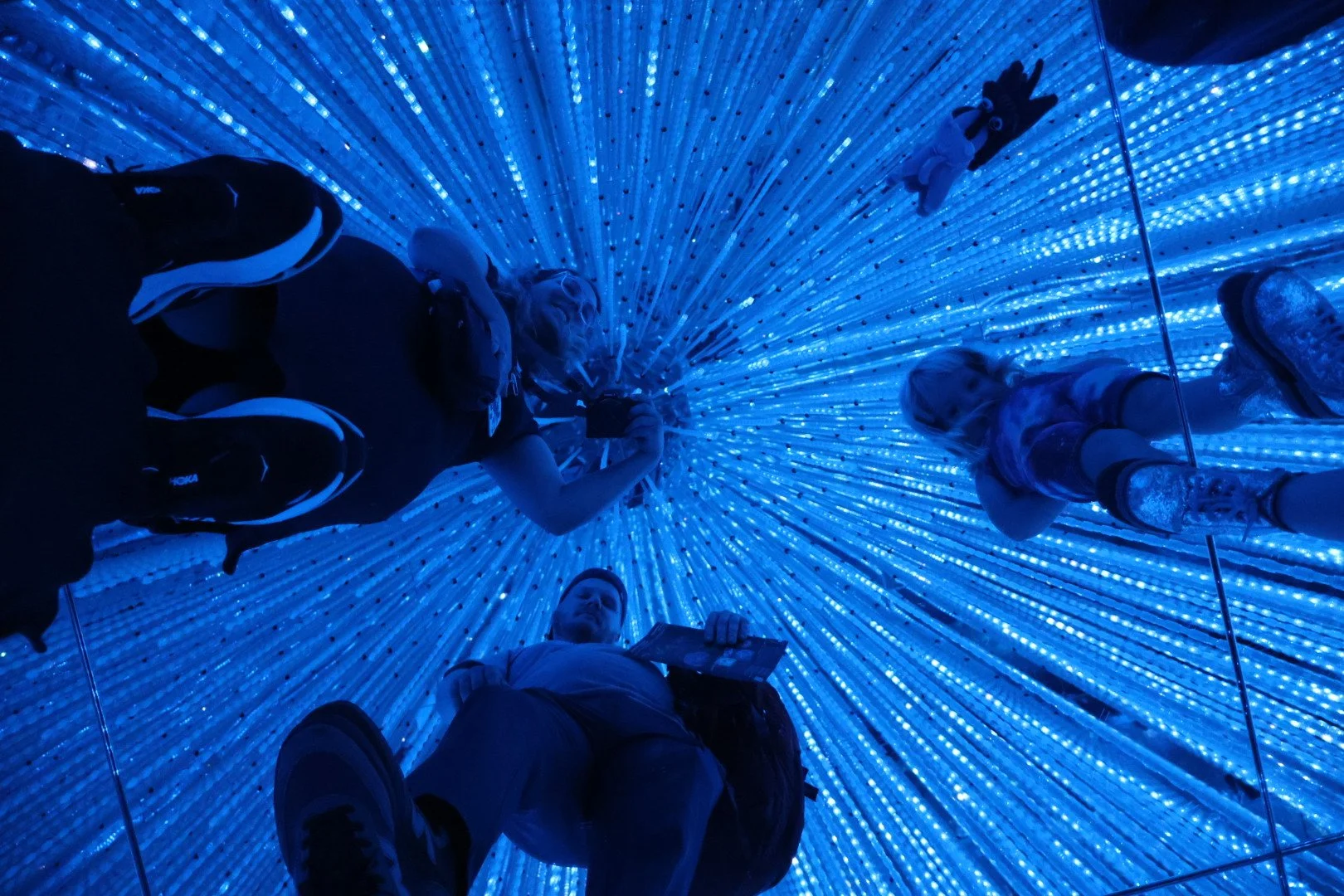 Taking a mirror family selfie at TeamLabs Borderless in Tokyo, Japan