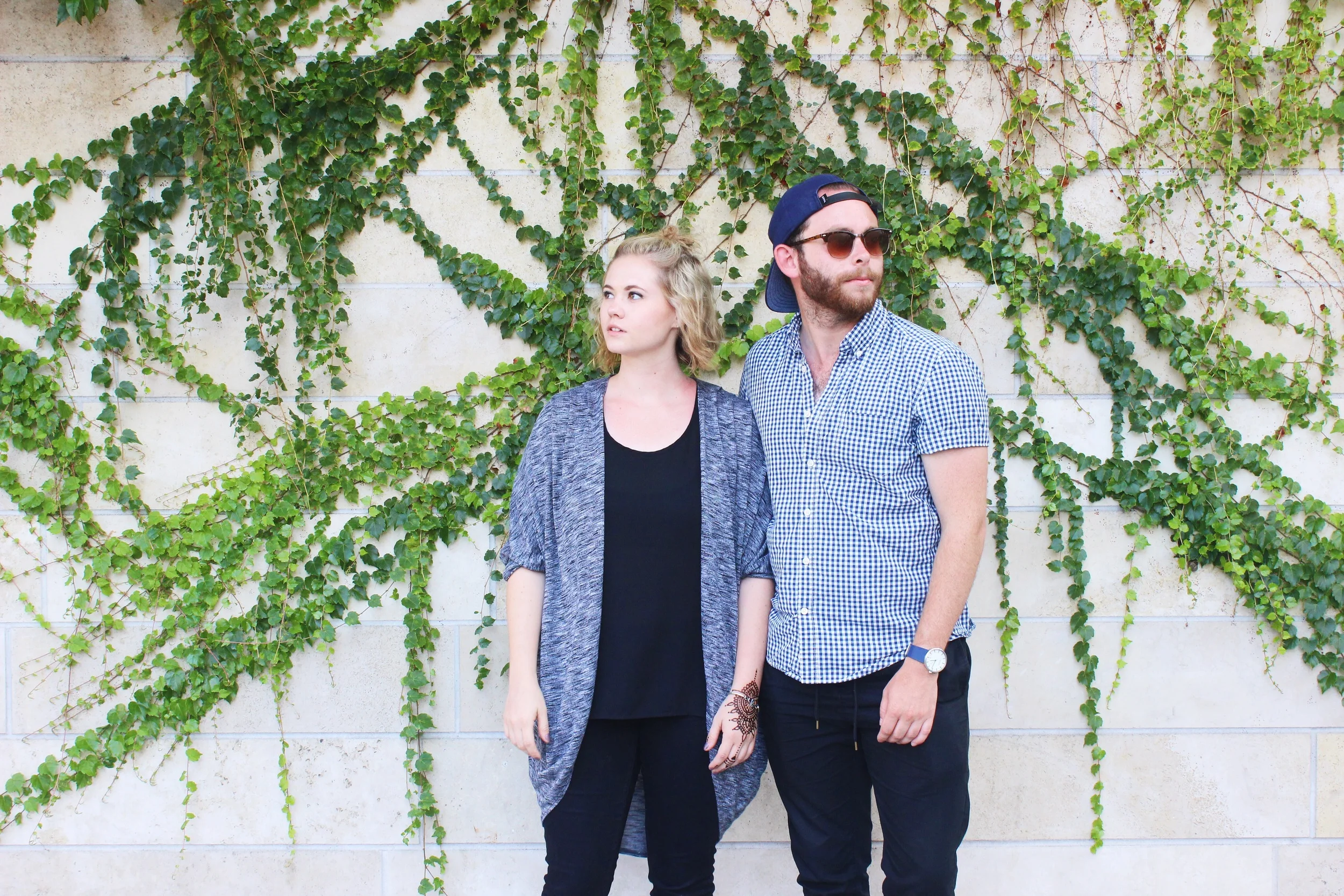 There's some stairs that will lead you up through the seemingly-moving reflective plates. You can go around to the back to see a garden area and a beautiful mosaic flower piece, "A Rose for Lilly," — Frank Gehry's tribute to Lillian Disney — and that will lead you to some stairs with a leaved wall for more #instagrammoments haha. But actually. It was a cute setting to capture Whitney and Chris.